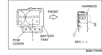 2. Rotate until the area F is paralleled. The harness and the PCM cover should be located at the area G.