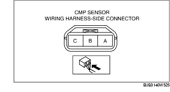 • If not within the specification, replace the CMP sensor. (See CAMSHAFT POSITION (CMP) SENSOR REMOVAL/INSTALLATION [ZJ, Z6].)