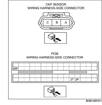- CKP sensor terminal C and PCM terminal 2BF
