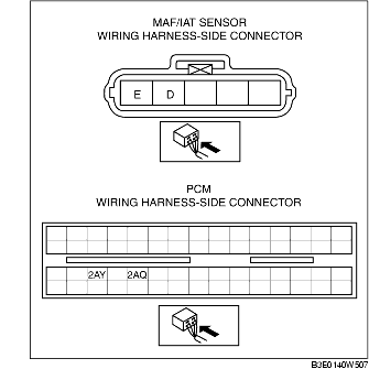 - MAF/IAT sensor terminal E and PCM terminal 2AY