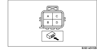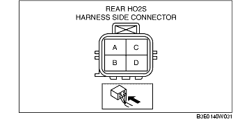 2. Measure the rear HO2S resistance between terminals C and D.