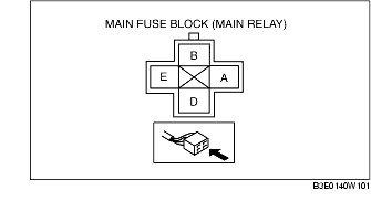 - HO2S terminal C and main relay terminal E
