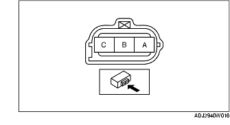 3. Verify that the resistance between terminals B and C changes moderately corresponding to the throttle valve openings.