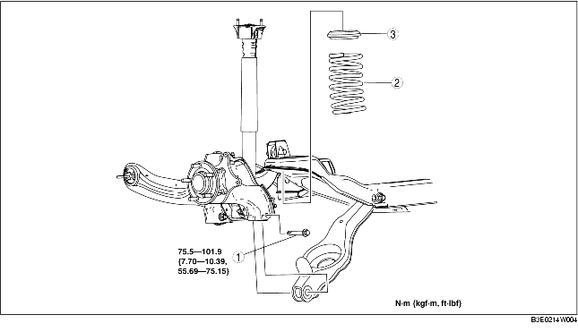 2. Align the upper end of the rear coil spring with the step of the upper spring seat rubber.