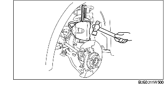 1. Remove the brake caliper component from the steering knuckle and suspend it out of the way using a cable.