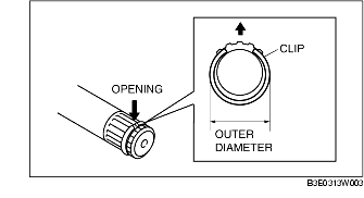 1. Install a new joint shaft clip to the clip groove at the end of the joint shaft with the clip opening facing upward and the clip width within the specification.