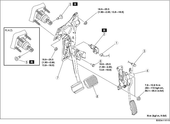 1. Inspect the brake pedal. (See BRAKE PEDAL INSPECTION.)