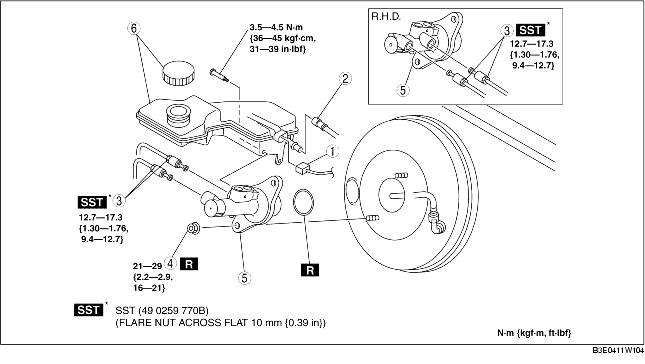 1. Remove the reserve hose from the reserve tank while pressing the point indicated by the arrow in the figure.