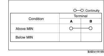2. Inspect for continuity according to fluid level between the brake fluid level sensor terminals.