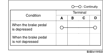 • If not as indicated in the table, replace the brake switch.