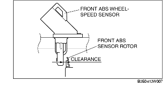 1. Inspect the clearance between the front ABS wheel-speed sensor and the ABS sensor rotor.