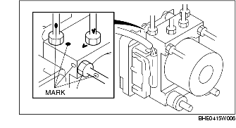 1. Place an alignment mark on the brake pipe and DSC HU/CM.