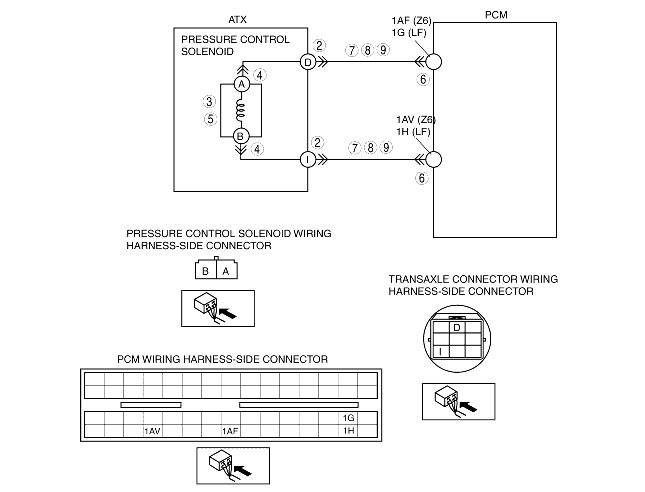 - PCM terminal 1AF (Z6)/1G (LF) and ATX terminal D