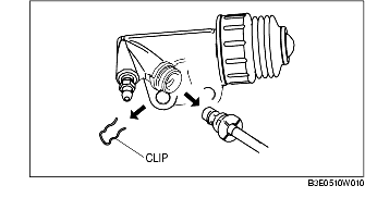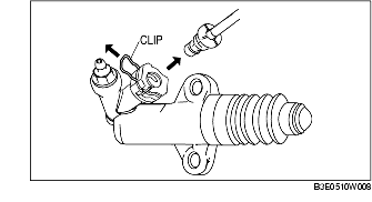 1. Pull the clip to the position shown in the figure and pull out the clutch pipe connector straight to detach it.
