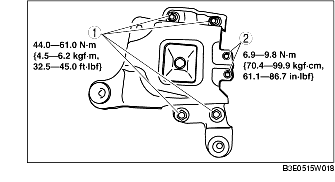 4. Place the battery tray bracket on the No.4 Engine mount rubber with the body stud bolts passing through the holes and tighten nuts in the figure.
