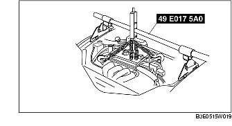 3. Tighten the SST (49 E017 5A0) so that the engine is located at the specified position.