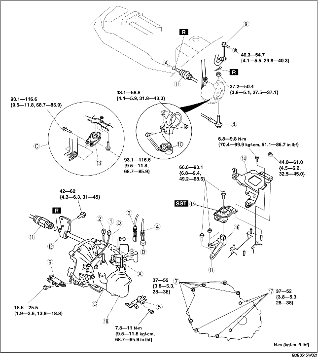 • A hoist or small crane can be used in place of the SST (49E 017 5A0).