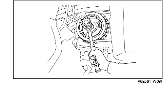 1. Hold the crankshaft pulley to prevent the drive plate from rotating.