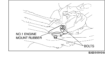 2. Install the No.1 engine mount rubber to the crossmember and temporarily tighten bolts.