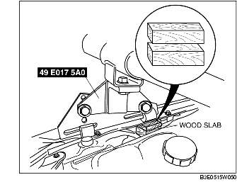 1. To prevent crushing the front fender panel, insert a wood slab of appropriate size between the front fender panel and upper apron reinforcement.