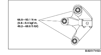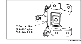 3. Place the No.4 engine mount rubber with the body stud bolts passing through the holes and tighten the new bolt as shown in the figure.