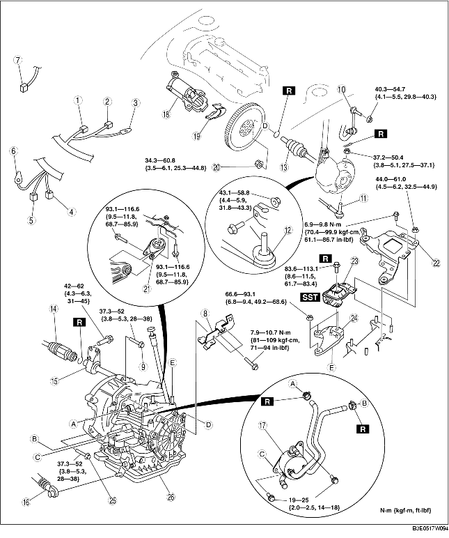Transaxle mounting bolt (upper side)