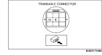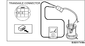 5. Measure the resistance between the transaxle connector terminals E and H.