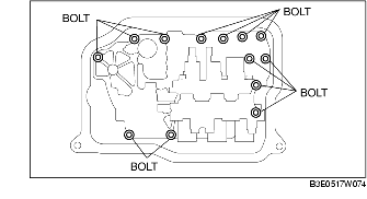 8. Remove the control valve body installation bolts as shown in the figure, then remove the control valve body component as shown in the figure.