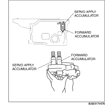 1. Install the accumulator springs and accumulators into the transaxle case.