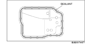 5. Apply a light coat of silicon sealant to the contact surfaces of the oil pan and transaxle case.