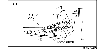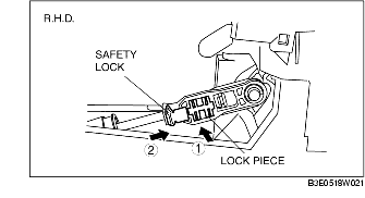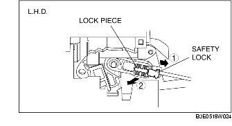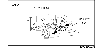 5. Lock the lock piece and safety lock of the selector cable (selector lever side) in the order as shown in the figure.