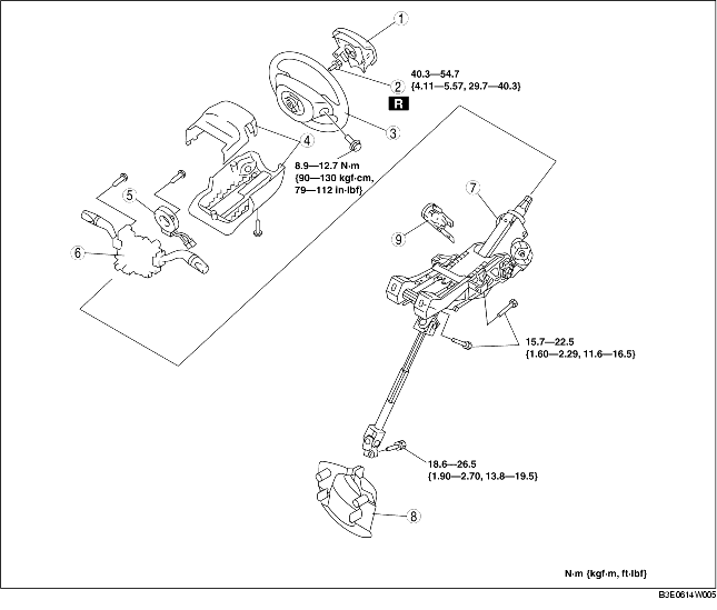 1. Set the wheels in the straight-ahead position and install the steering wheel.