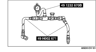 9. Turn the steering wheel fully to the left and right, then measure the fluid pressure generated at the gear housing.