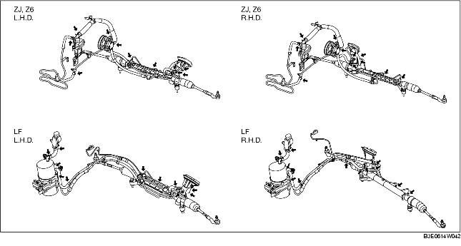 • Do not maintain the steering wheel fully turned for 5 s or more. It is possible that oil temperature can rise and this will negatively affect the oil pump.