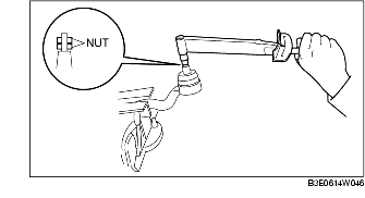 4. Install two nuts to the ball joint and measure the tie-rod end rotational torque using a torque wrench.