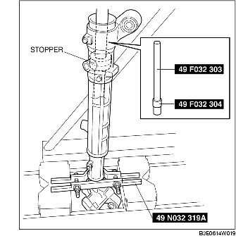 1. After installing the SST to the steering rack end, assemble the rack bushing to the rack housing.
