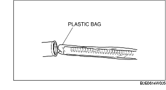 2. Install a plastic bag to the rack teeth and insert the steering rack in the gear housing.