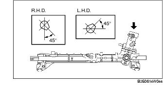 2. When the pinion shaft position is as shown in the figure with the rack in the center, insert the pinion shaft and valve housing component.