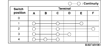 2. Verify that the continuity between the fan switch terminals is as indicated in the table.