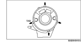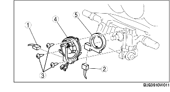 1. Detach the tabs at the four locations shown in the figure and remove the steering angle sensor.