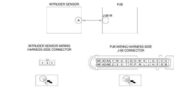 • Inspect the intruder sensor connector terminals for poor connection (such as damaged/pulled-out pins, and corrosion).