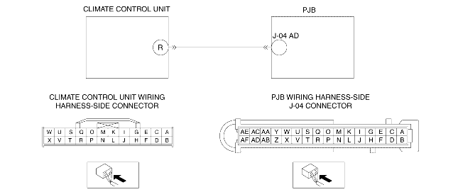 • Inspect for continuity between PJB terminal J-04 AD (wiring harness-side) and body GND.