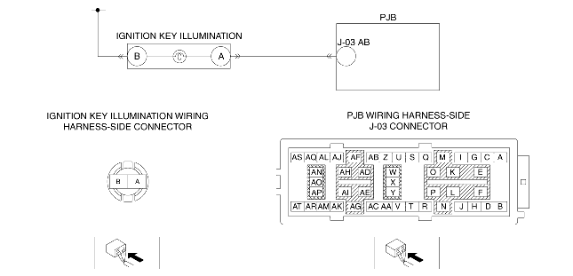 • Inspect the key illumination connector terminals for poor connection (such as damaged/pulled-out pins, and corrosion).