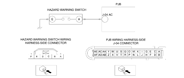 • Inspect the hazard warning switch connector terminals for poor connection (such as damaged/pulled-out pins, and corrosion).
