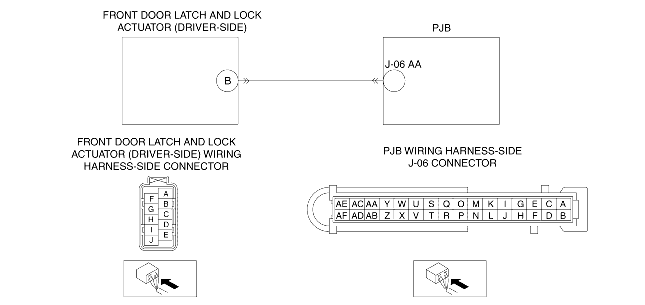 • Inspect for continuity between PJB terminal J-06 AA (wiring harness-side) and body GND.