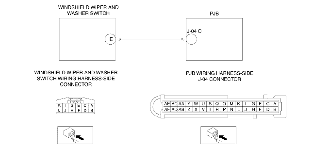 • Inspect the windshield wiper and washer switch connector terminals for poor connection (such as damaged/pulled-out pins, and corrosion).