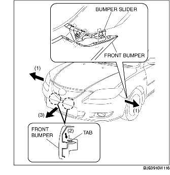 1. Pull the front bumper ends (wheel arch) outward to detach from the bumper slider.