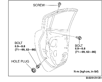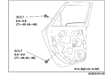 6. Remove the rear door trim. (See REAR DOOR TRIM REMOVAL/INSTALLATION.)