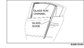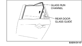 8. Remove the rear door glass guide and glass run channel as a single unit.