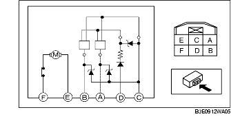 1. Apply battery positive voltage and connect ground to power window motor terminals E and F, and then inspect the power window motor operation.